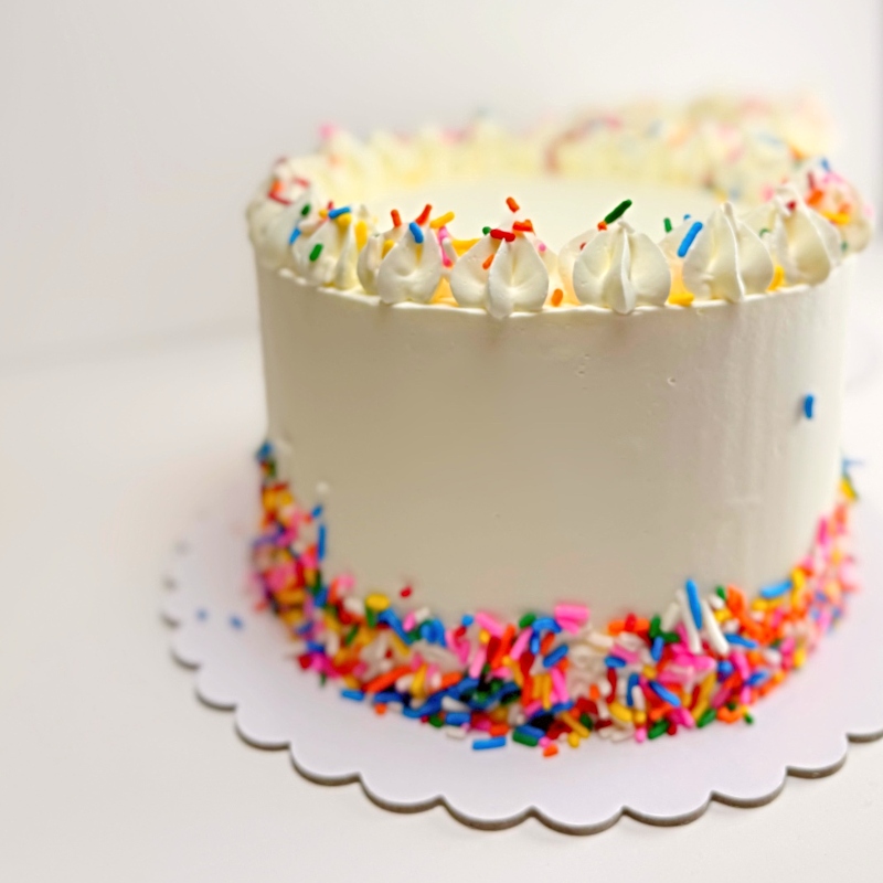 A playful classic made from scratch with a moist vanilla cream base and vibrant sprinkles. Filled with our signature fluffy marshmallow cream, this cake is a delightful treat for any celebration!